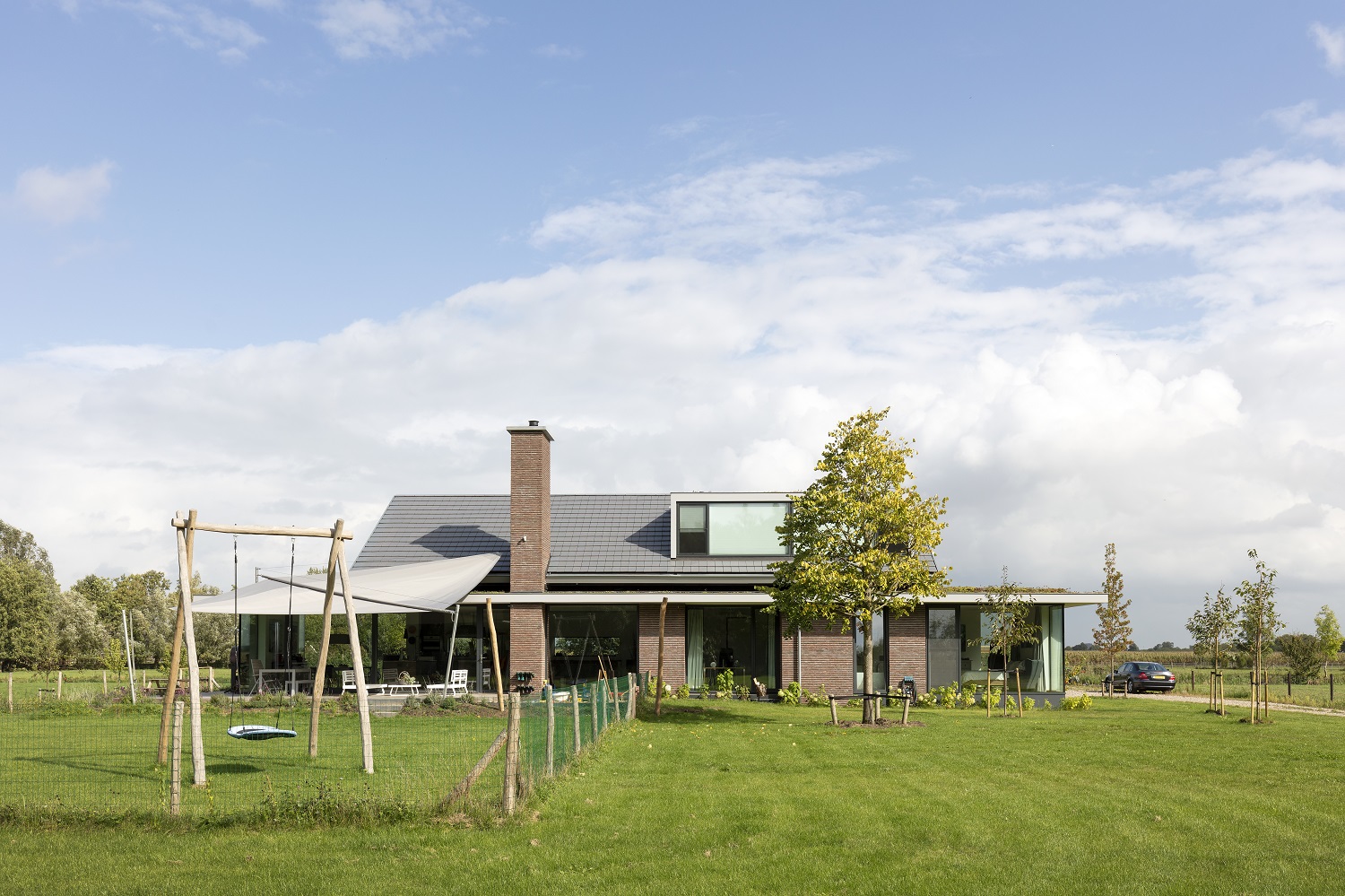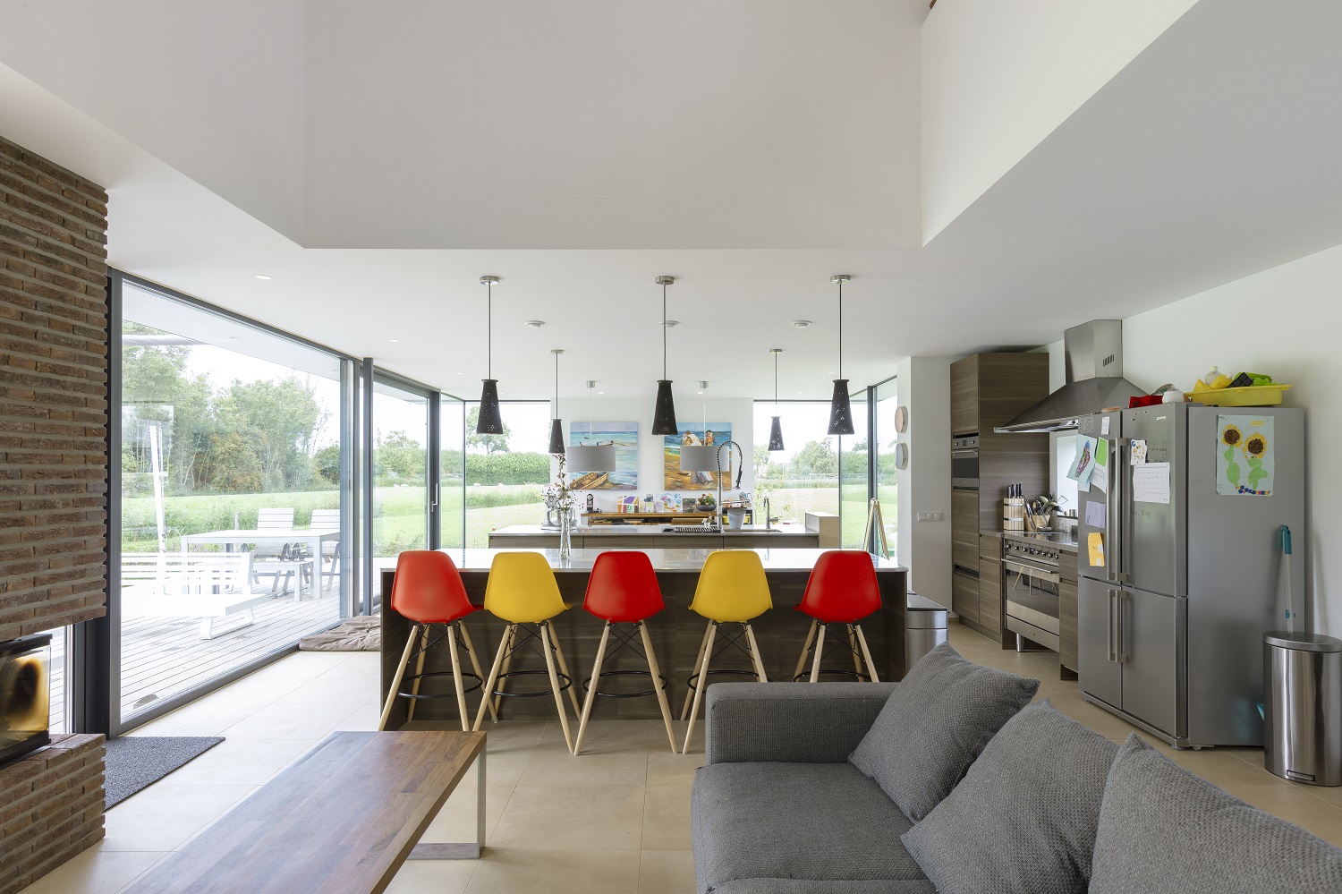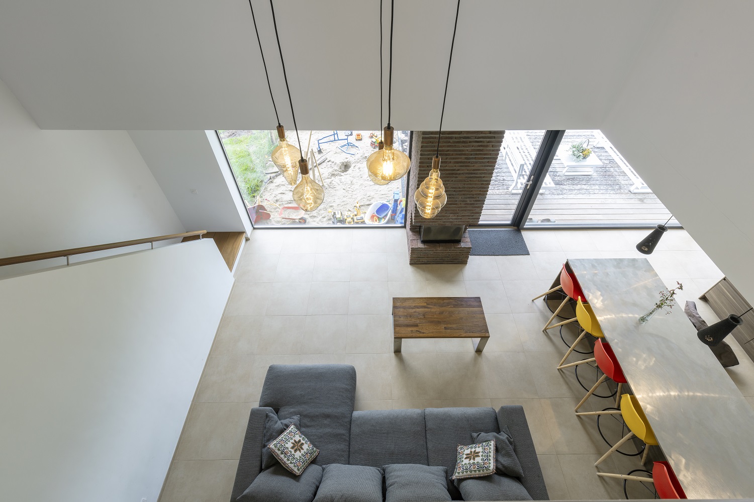 Het huis zelf is enorm fijn. Alle delen zijn goed te gebruiken. Op de een-of-andere wijze zat dat idee al in mijn jeugdschets. De kinderen vinden het prachtig. Op de eerste verdieping hebben ze een eigen kamer plus een af te sluiten gang waarin ze samen spelen. Kans is groot dat die nu bezaaid met Lego is. Het huis is weliswaar groot, maar voelt niet als enorm. Daar het relatief laag, langwerpig en ingetogen is, ervaren wij het als comfortabel, huiselijk en gezellig. Het is geen enorm ding waar je in verdwaalt. Geen museumhuis. Het is een huis om in te leven.”