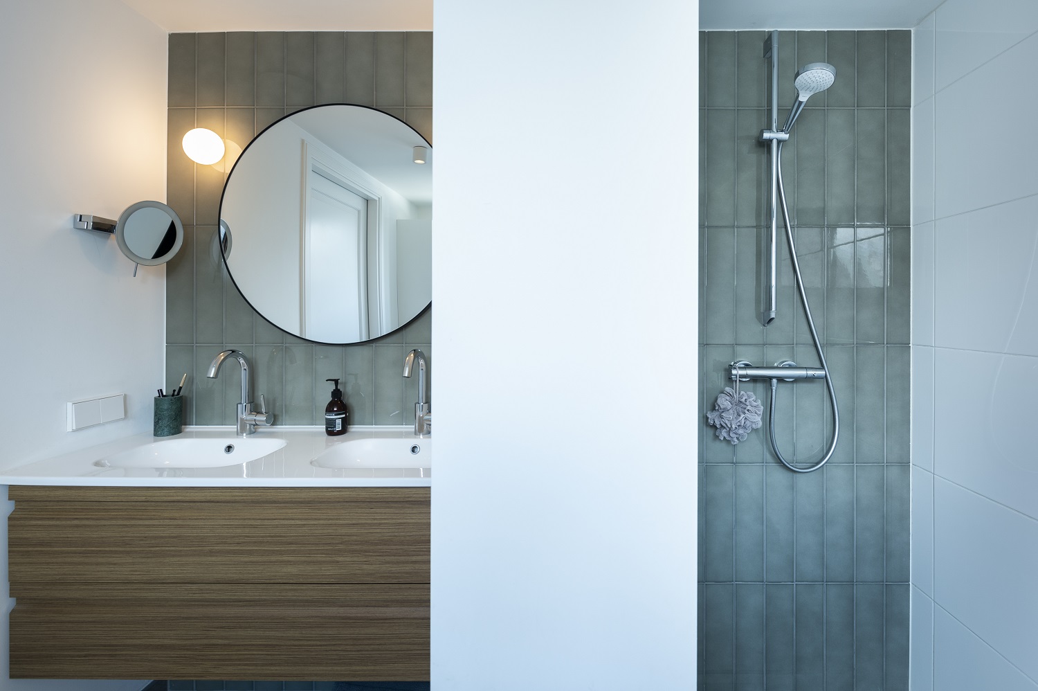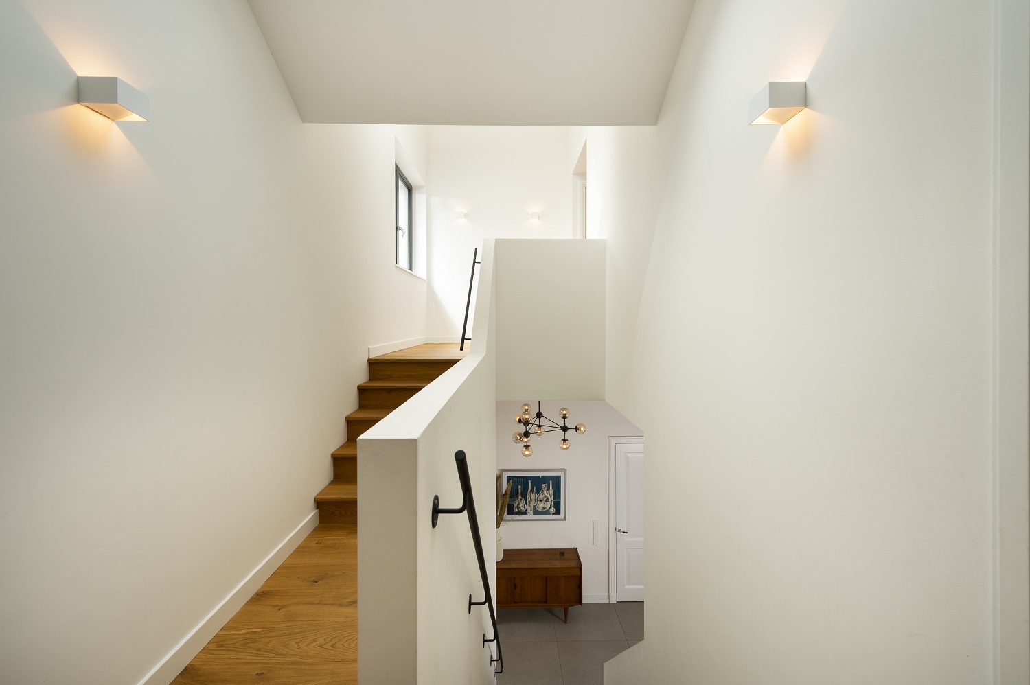 Bijzonder hoe je tijdens de bouw oppervlakten verkeerd in kan schatten. Voordat de vloer gestort werd, oogde het allemaal maar klein. We vroegen ons echt af hoe het er allemaal in zou gaan passen. Het huis werd vervolgens ‘groter’ met de verschijnen van de muren en groeide verder dankzij het plaatsen van de tussenwanden. Het strakke stucwerk deed er vervolgens nog een schepje bovenop.